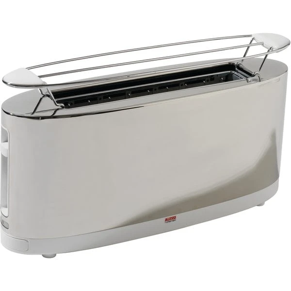 En brödrost från Alessi i elegant och minimalistisk design. Alessis härliga brödrost kommer inte att göra dig besviken när det gäller prestanda. Med en rad smarta funktioner är brödrosten lysande när du vill ha jämnt rostat, gyllene bröd, och vem vill inte ha det? Brödrosten har bland annat en smuluppsamlare undertill som gör det enkelt att rengöra brödrosten och man slipper smulor i hela brödrosten. Skalet på brödrosten är gjort i metall med ett yttre skal i rostfritt stål.