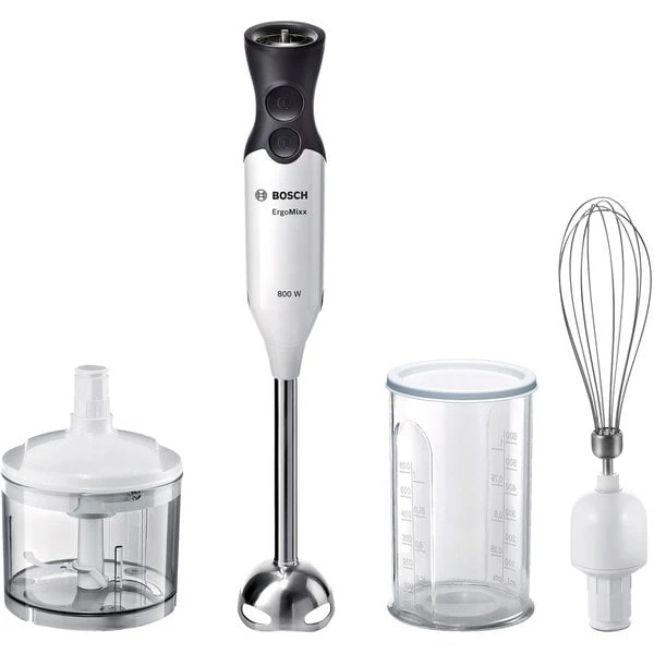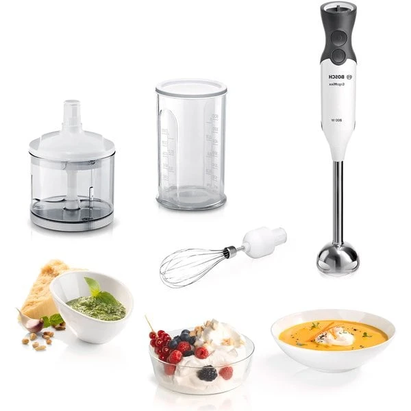 Laga till smakfulla soppor och lÀckra dips! Med stavmixern ErgoMixx frÄn Bosch medföljer dessutom en minihackare, en ballongvisp och en mÄttbÀgare med lock, som gör att du kan anvÀnda den till mycket. Du kan laga till varma och kalla soppor tack vare den praktiska stÄlfoten och minihackaren kan bland annat anvÀndas för pesto, tapenade, att hacka nötter, grönsaker och mycket annat. Ballongvispen Àr perfekt för att vispa grÀdde, sÄs och liknande.