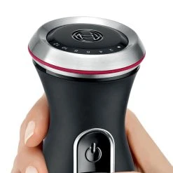 Tack vare QuattroBlade Pro, med fyra slitstarka och extra vassa knivar, mixar du maten snabbt och enkelt. Du får dessutom ett bekvämt och säkert grepp tack vare mixerns låga vikt och gummerade motordel. Mixern är dessutom utrustad med extra stora knappar som gör den smidig att navigera.