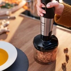 Vill du bli mer effektiv i köket? Låt en stavmixer från Bosch hjälpa dig att spara tid och uppnå ännu bättre resultat. Den här kraftfulla stavmixern i rostfritt stål levereras inklusive minihackare och mixerkopp och har en motor med effekt på hela 1000 watt. Tack vare motorn, den specialdesignade foten med antisugteknik och den effektiva turbofunktionen kan du enkelt hantera även de tuffaste ingredienserna.