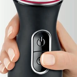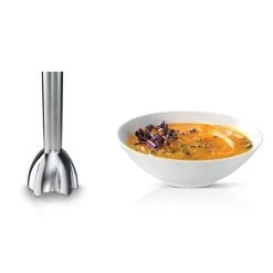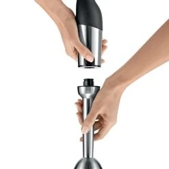 Stavmixern är tillverkad av rostfritt stål, med en motor på 1000 watt som klarar även de tuffaste ingredienserna. Maten mixas snabbt och enkelt med QuattroBlade Pro, fyra slitstarka och extra vassa knivar. Du får dessutom ett bekvämt och säkert grepp tack vare mixerns låga vikt och gummerade motordel. Du kan välja mellan 12 olika hastigheter, vilka du enkelt justerar via de stora och lättillgängliga knapparna. Om du behöver extra kraft kan du ta till turboknappen, som ger dig resultat på nolltid.