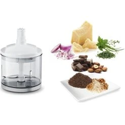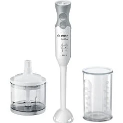 GreppvÀnlig stavmixer frÄn Bosch som kan underlÀtta vardagens middagsbestyr. Med en tystgÄende motor pÄ 600 watt och 12 hastigheter plus turbofunktion klarar den de flesta utmaningar du stÀller den inför. Den Àr designad med ett ergonomiskt och gummerat handtag för bÀsta komfort. Mixerfoten Àr utrustad med en QuattroBlade- kniv med fyra blad som med lÀtthet hackar, mixar och mosar Àven hÄrdare ingredienser. BÄde mixerfot, mixerbÀgare samt minihackare (förutom locket) tÄl maskindisk för enkel och smidig rengöring.