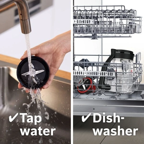 Alla blenderns lösa delar Àr diskmaskinssÀkra. Kannan har dessutom ett automatiskt rengöringsprogram sÄ att du kan göra rent den direkt efter anvÀndning. Registrera din blender hos Bosch inom sex mÄnader efter inköp för hela 10 Ärs motorgaranti.