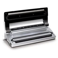 Förläng dina matvarors hållbarhet med den smarta Fast Vac 4000 vakumförpackaren från Caso. Maskinen är designad med en integrerad kniv som lätt skär loss den färdiga vakuumförpackningen. Här ingår också 20 påsar och 1 vakuumrulle som passar bra till matlagning med en sous vide, samt till förvaring av i både kyl och frys. Denna modell är särskilt lämplig till mjuka och ömtåliga matvaror som räkchips och skumtoppar eftersom styrkan kan ställas in manuellt på den digitala displayen.