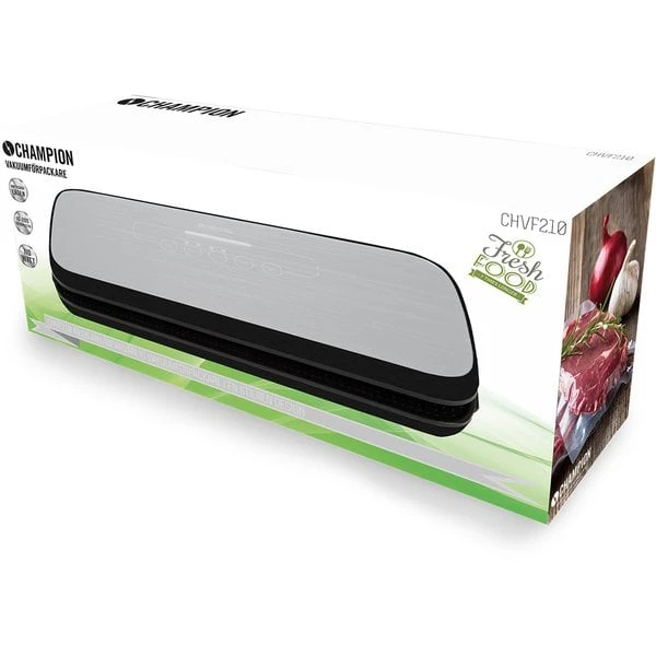 Exponering för luft kan få mat att förlora både smak och näring. Det kan också öka tillväxten av bakterier och jäst, vilket kan leda till att maten förstörs. Vakuummaskinen Champion CHVF210 tar bort luften och stänger in både smaken och färskheten. Vacuumförpacka morgondagens lunch eller njut av säsongens guldkorn längre.
