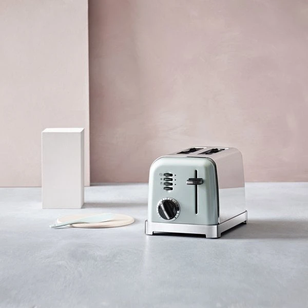 Starta morgonen på rätt sätt med rostat bröd till frukost. Brödrosten från Cuisinart är framställd i rostfritt stål och har plats för 2 skivor bröd. Brödrosten har en mjuk och snygg retro design som kommer i två olika färger: rosa och grön.