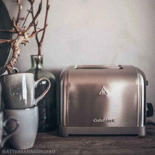 Cuisinart brödrost i rostfritt stål. Stänger av sig själv och hissar upp brödet när rostningen är klar.