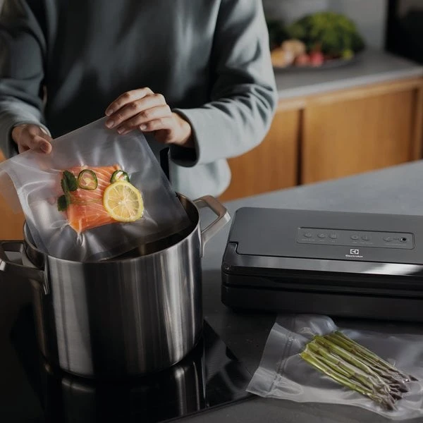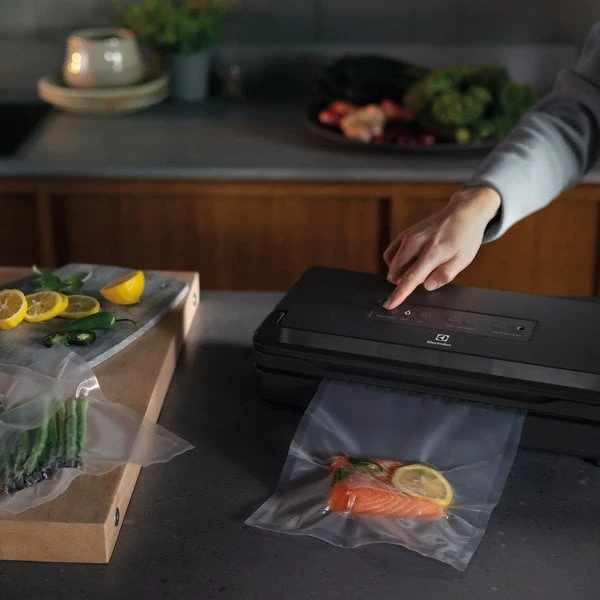 Snabb vakuumteknologi kombinerat med en stark dubbelförsegling garanterar att maten får en lång hållbarhet. En vakuumförseglad påse garanterar att råvaror inte tappar fukt, smak och näringsämnen. Få korrekt vakuum med den automtiska vakuumsystemfunktionen Vac & Seal. Den kommer med en vakuumrulle (28cmx6m) och en slangkoppling (till vakuumemballage i förvaringslåda eller vakuumpåse).