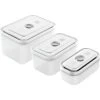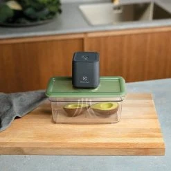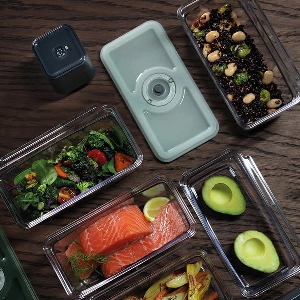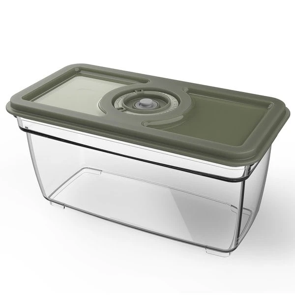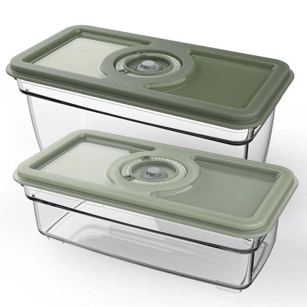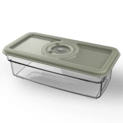 Vaakuumförvaringslåda till förvaring av din mat helt lufttätt. Det ingår två förvaringslådor på 1 och 1,6 liter. Materialet är godkänd till förvaring av matvaror och är även BPA-fritt. Den har inbyggd datummärkning så du har full kontroll över matens hållbarhet. De tål både frys och kan rengöras i diskmaskin.