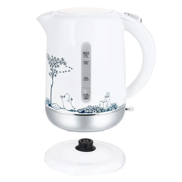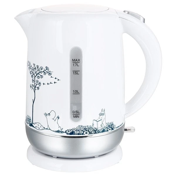 Vit vattenkokare frÄn Emerio med gulligt muminmönster, som passar perfekt som en mysig detalj i muminÀlskarens kök. Vattenkokaren rymmer 1,7 liter, och kokar snabbt upp önskad mÀngd vatten tack vare effekten pÄ 2200 watt. Den Àr dessutom tillverkad i BPA-fri plast, och Àr utrustad med automatisk avstÀngning och en belyst brytare.