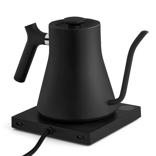 Fellow Stagg EKG Àr en vattenkokare med svanhals-pip som ger dig full kontroll nÀr du hÀller upp det uppkokade vattnet. Du har Àven full kontroll över temperaturen som kan stÀllas in mellan 57-100°C pÄ den anvÀndarvÀnliga LCD-displayen. Den upplysta LCD-displayen visar instÀlld temperatur, realtidstemperatur och hur temperaturen gradvis ökar (och kan visa Celsius eller Fahrenheit). Med den kraftfulla 1200 watt-motorn vÀrmer Stagg vattnet snabbt och och Àr ett energibesparande alternativ till att till exempel koka upp pastavattnet.