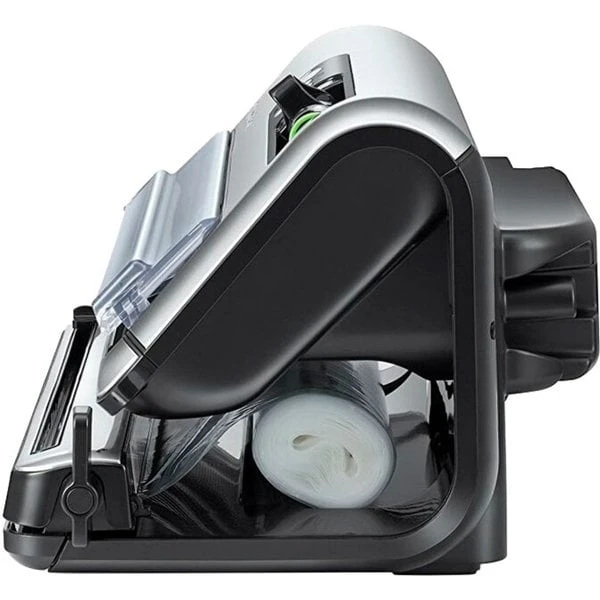 Foodsaver Flow är en vakuumpackare som automatiskt tömmer förpackningen på luft och på så sätt ökar hållbarheten på de flesta matvaror med upp till 5 gånger. Kan även kombineras med en sous vide-maskin! Denna modell har en automatisk användningsfunktion. Fuktig och torr-inställningarna ser till att matvarorna blir precis som du önskar. Designen är professionell med silver och svarta detaljer.