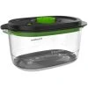 Vakuumförseglingen är långtidshållning och läckagesäker under vakuum. Den har också en praktisk vakuumindikator som visar när luften tas ut. De är enkla att använda då du bara behöver vrida ventilen mot den inställningen du önskar, tillsluta förseglingen och tyck på knappen. Du kan även rengöra den i diskmaskinen för en lättare rengöring. Den tål också att användas i mikrovågsugnen, vilket gör dem utmärkta för att förbereda måltider och liknande. När behållaren inte används kan du enkelt stapla dem för en enkel och praktisk förvaring om du har flera behållare i samma serie.