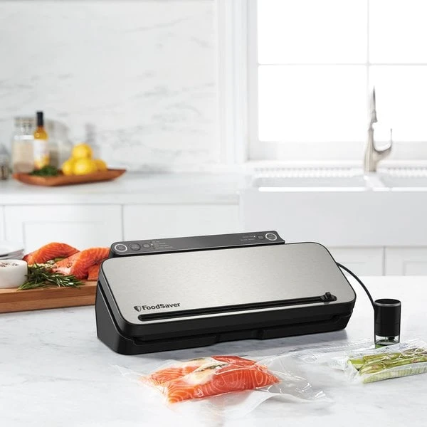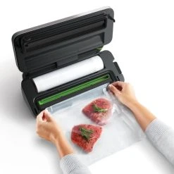 Vakuumförpackaren har inbyggd förvaring av plastrullar, integrerad cutting device, säker låsmekanism och pulsfunktion för större precision. Därtill kan den användas med alla FoodSaver-tillbehör som påsar och Zip-lock. Här ingår 1x 28 cm av 3 m rulle, 2x små påsar, 2x stora påsar, 2x vakuumpåsar Zip-lock 950 ml och 2x vakuumpåsar Zip-lock 3,79 liter (Nyhet). Maskinen är dessutom “bäst i test”.