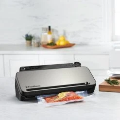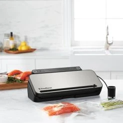 Förvara maten kort- och långvarigt helt utan problem med denna vakuumförpackare. Maskinen suger ut all ur påsarna och skapar ett säkert vakuum som ser till att hålla maten färsk otroligt lång tid. VS3190X Stainless Sealer har flera praktiska funktioner som gör maskinen otroligt lätt att använda.