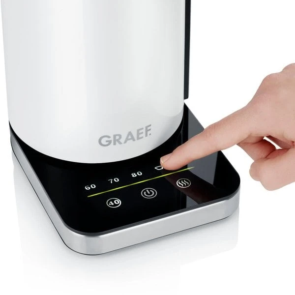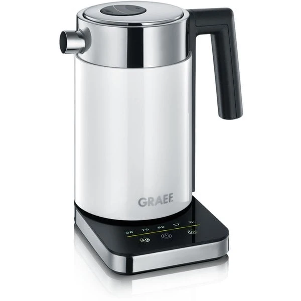 Med denna stilfulla Vapo vattenkokare frĂ„n Graef kan du bĂ„de koka vatten, vĂ€rma upp barnmat och desinficera flaskor. Vattenkokaren har en LED-display med hela 5 temperaturinstĂ€llningar; 40°C, 60°C, 70°C, 80°C och +/-93°C, vilket gör det möjligt att anpassa vattnet till olika typer av drycker. HĂ€r medföljer Ă€ven en smart tillsats för att vĂ€rma barnmat och desinficera flaskor. Kokaren har en unik och stilren design som gör den perfekt för ala typer av kök. Dess yttre Ă€r tillverkat i skinande akryl och insidan i rostfritt stĂ„l – en kombination som bidrar med bĂ„de utstrĂ„lning och hĂ„llbarhet.