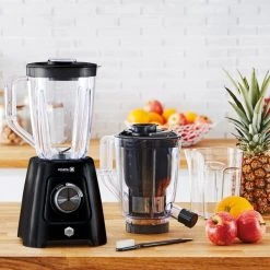 Smoothies eller juice â varför vĂ€lja? Med den hĂ€r varianten av OBH Nordica Blendforce for du bĂ„de blender och rĂ„saftscentrifug i ett. Du kan alltsĂ„ göra bĂ„de krĂ€miga smoothies och svalkande juicer med samma produkt. Produkten levereras med tvĂ„ olika behĂ„llare, en blenderkanna pĂ„ 1,25 liter och en juicekanna pĂ„ 1 liter, vilka du enkelt byter mellan. PĂ„ sĂ„ vis kan du fĂ„ i dig nyttiga vitaminer frĂ„n frukt och grönt pĂ„ ett gott och smidigt sĂ€tt.
