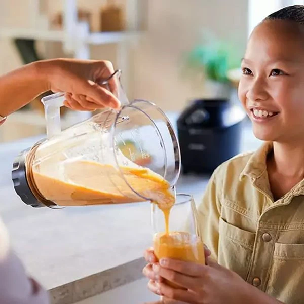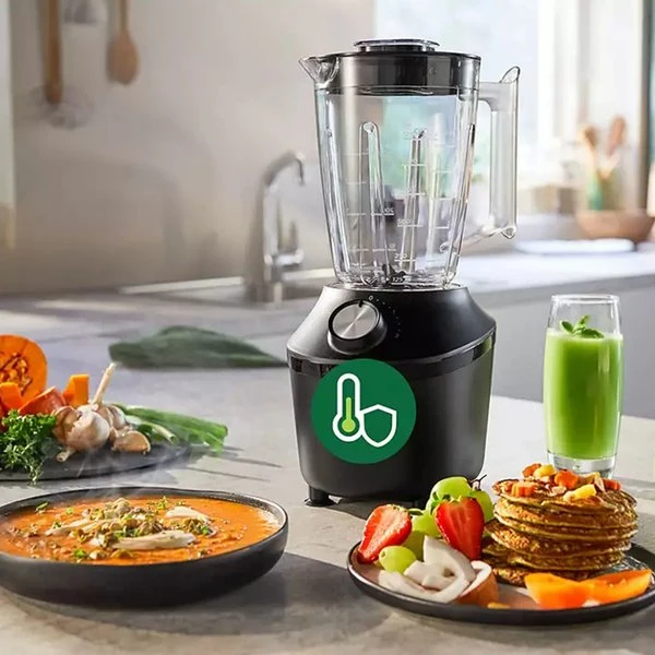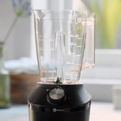 MixerbehÄllaren i glas har en effektiv kapacitet pÄ 1,25 liter (maxkapacitet 2 liter) och kan diskas i diskmaskin. Mixern har tvÄ hastighetslÀgen och en pulsfunktion, med en Motor Thermo Protection-sensor som skyddar motorn mot överbelastning. Fötterna har sugkoppar som ger extra stabilitet och hindrar mixern frÄn att vÀlta under anvÀndning. Du har dessutom tvÄ Ärs garanti, sÄ att du kan vara sÀker pÄ att mixern stÄr pall för mÄnga utmaningar i köket.