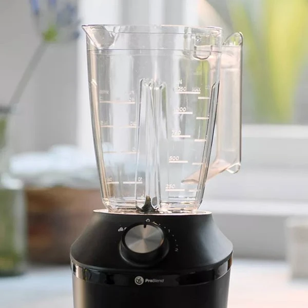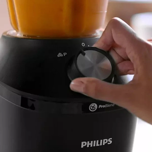 Mixern har en stilren och modern design som passar fint i de flesta kök. Tack vare det unika ProBlend-systemet kombinerar den tre tekniker för att ge dig ett utomordentligt resultat. Motorn driver mixningsflödet och fÄr ingredienserna att cirkulera, de specialdesignade bladen maximerar skÀromrÄdet och behÄllarens unika rÀfflor gör att ingredienserna kontinuerligt förs tillbaka in i flödet under mixningen.
