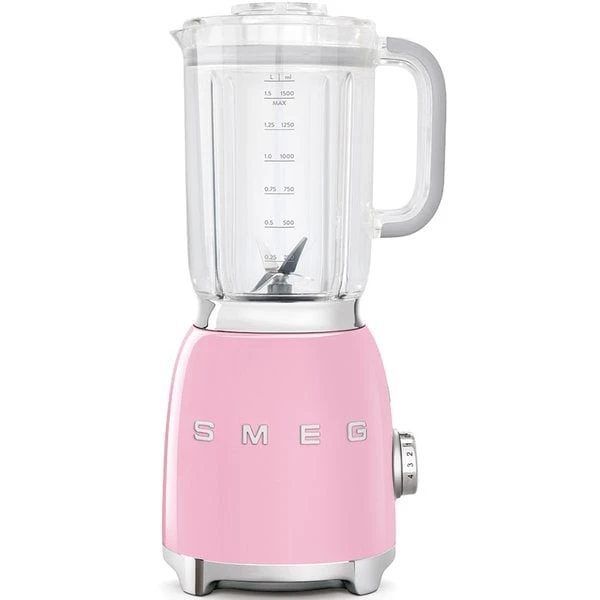 Nu har Smeg utökat sin 50tals inspirerade vitvaruserie med köksapparater. HĂ€r Ă€r deras snygga blender i en hĂ€rlig pastellrosa fĂ€rg, perfekt för att göra en god smoothie eller krossa is till drinken.Â