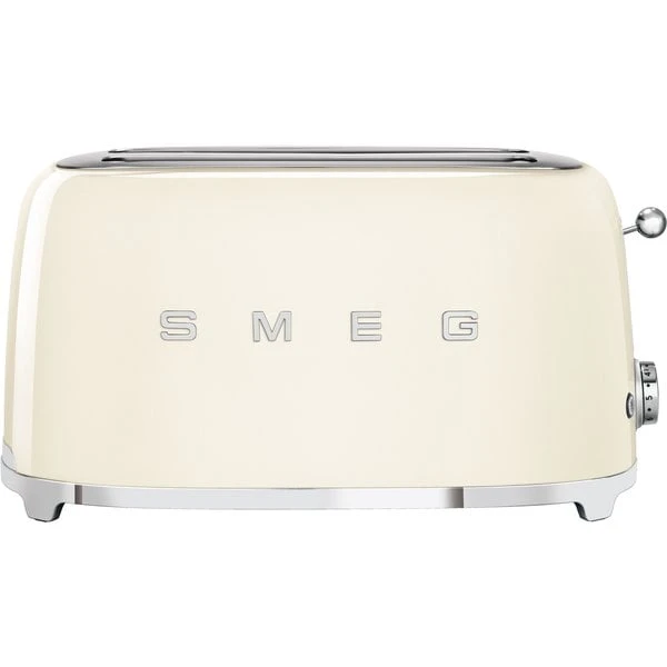 Cremefärgad brödrost i härlig femtiotalsstil från det underbara varumärket Smeg. Tillverkad av lackerad stålplåt.