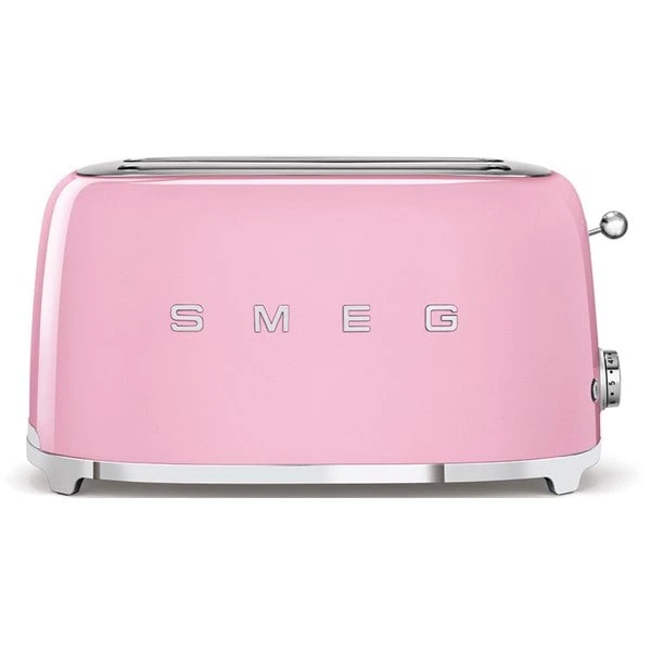 Smeg rosa brödrost i härlig femtiotalsstil. Tillverkad av lackerad stålplåt.