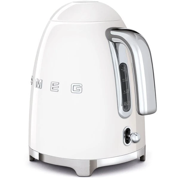 En hĂ€pnadsvĂ€ckande snygg vattenkokare i vit frĂ„n italienska Smeg. Vattenkokaren Ă€r en del i Smegs retroinspirerade köksmaskiner och köksapparater. Design som pĂ„minner om en gammal rymdraket. Och vattenkokaren Ă€r verkligen galaktiskt snygg.Â