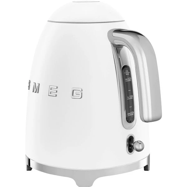 Dekorera ditt kök med denna vackra och effektiva vattenkokare frĂ„n Smeg som rymmer upp till 1,7 liter vatten. Vattenkokaren har ett dolt vĂ€rmeelement, avtagbart kalkfilter av rostfritt stĂ„l, gummifötter sĂ„ att den stĂ„r stadigt och lock med push-öppning. Vattenkokaren kan placeras hela 360Âș pĂ„ basen och kan stĂ„ i alla vinklar för att fungera. Maskinen stĂ€nger automatiskt av sig vid 100ÂșC, eller om det saknas vatten i vattenkokaren.
