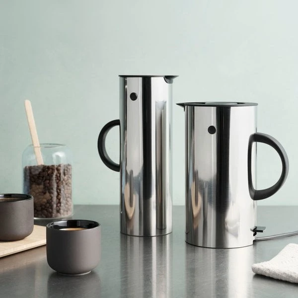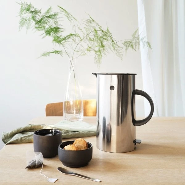 Som en del av den världskända designserien EM77 från Stelton kommer här en läcker vattenkokare. Vattenkokaren har en kapacitet på 1,5 liter och gör att du snabbt och effektivt kan koka upp morgonens tevatten eller middagens pastavatten. Kannan har en fantastiskt design och med sin stilrena cylinderform kan du enkelt matcha in den i ditt kök. Med funktioner som automatiskt avstängning, avtagbart kalkfilter och torrkokningsskydd är den anpassad för en praktisk användning i vardagen. Perfekt för dig som inte vill tumma på funktionalitet eller design!