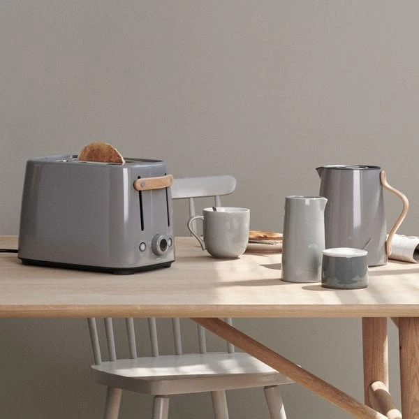 Denna brödrost är en del av den prisvinnande designserien Emma från danska Stelton. De rena linjerna och den moderna nordiska designen ger ett tidlöst intryck som garanterat passar in i ditt kök. Med sin stilrena gråa färg och läckra trähandtag är det en brödrost som gärna lämnas framme och blir en vacker inredningsdetalj.