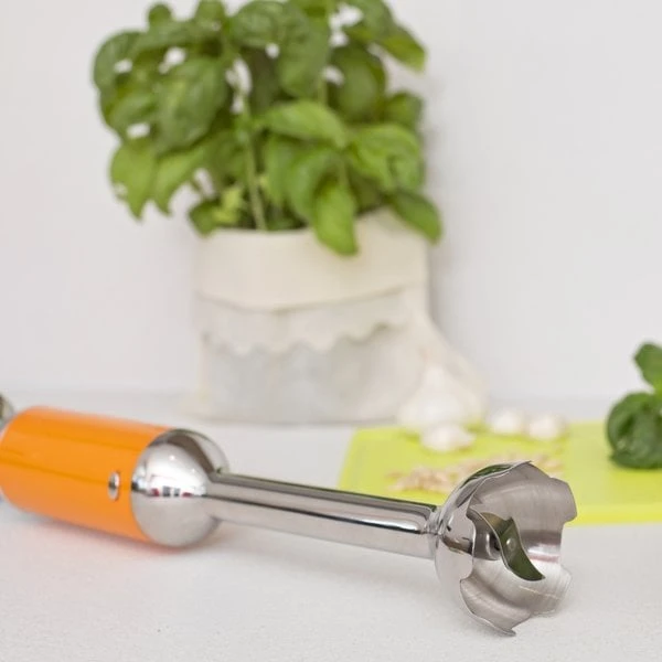 Ge ditt kök en personlig touch med denna Viceversa-stavblender. Blandaren finns i en mÀngd olika lysande fÀrger sÄ att du enkelt kan hitta en fÀrg som inte finns i nÄgot kök. Stavblendern Àr utrustad med en kraftfull motor som arbetar med upp till 13 000 rpm, och med sina kraftfulla blad i rostfritt stÄl Àr denna stavblender redo för alla uppgifter som den kan möta. BlenderstÀllet Àr utformat med en speciell design som motverkar stÀnk Àven vid blandning i skÄlar och öppna kanter.