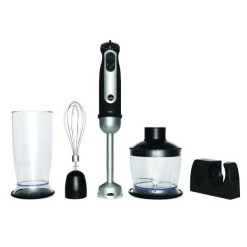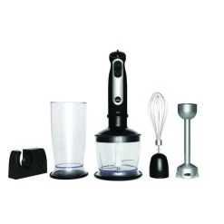 Kraftfullt stavmixerset frÄn Wilfa som man kan hacka, vispa och mixa med. Stavmixern har justerbar hastighet och ett gummihandtag för ett behagligt grepp. Gummilocken som ingÄr till bunkarna kan anvÀndas som bottenplatta.