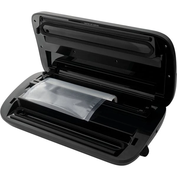 Här ingår också en vakuumrulle på 20 x 200 cm, 5 påsar på 20 x 30 cm och en vakuumslang. Vakuumförpackaren förseglar matvarorna med max 0,8 ar och kan suga upp till 24 liter/min.