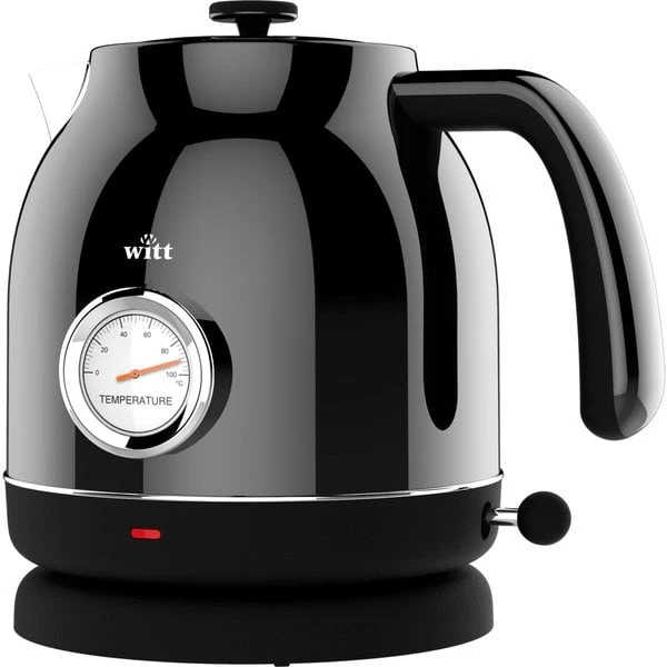 Denna smarta och lĂ€ckra retrovattenkokaren frĂ„n Witt Ă€r designad med en utvĂ€ndig temperaturindikator. PĂ„ indikatorn kan du avlĂ€sa vilken temperatur som vattnet i vattenkokaren har. Ănskar du en lĂ€gre temperatur Ă€n 100 grader sĂ„ Ă€r det bara att stĂ€nga av vattenkokaren nĂ€r önskad temperatur Ă€r nĂ„dd. Med hela 2400 watt sĂ„ vĂ€rmer den snabbt upp till 1,5 liter vatten sĂ„ att du inom kort kan njuta av en kopp te eller kaffe istĂ€llet för att vĂ€nta pĂ„ en lĂ„ngsam vattenkokare. Vattenkokaren dekorerar köksbordet snyggt med sitt skinande retroutseende och den matchar dessutom perfekt med kollektionens retrobrödrost.