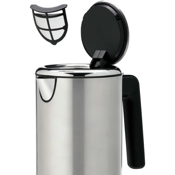 Koka vatten till teet, snabbkaffet eller vad du nu önskar med WMFŽs supersnabba Lono-vattenkokare. Vattenkokaren har en effekt pÄ 2400 watt sÄ det tar inte lÄng tid innan du har 1,3 liter kokande vatten redo att anvÀndas. Vattenkokaren Àr designad med dubbelvÀggisolering sÄ att kannans utsida hÄller sig kall, nÀr insidan Àr kokande varm. Lono-vattenkokare Àr utrustad med ett kalkfilter som Àr enkelt att ta av, som rengörs i ett nafs under rinnande vatten och med en diskborste eller svamp.