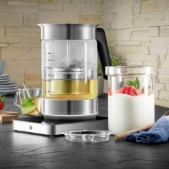 Lumero vattenkokare frÄn WMF har ambitioner utöver det vanliga. Den lÄter sig nÀmligen inte begrÀnsas av de förvÀntningar man oftast har pÄ en vattenkokare. Lumero-vattenkokare kan förutom att koka vatten ocksÄ fungera som ett vattenbad med den medföljande glasinsatsen. I vattenbadet kan du smÀlta choklad, eller vÀrma babymat. Och som om det inte vore nog sÄ Àr vattenkokaren ocksÄ utrustad med ett avtagbart tefilter sÄ att du kan brygga en hÀrlig kopp te direkt i den. Dessutom sÄ Àr vattenkokaren utrustad med torrkoknings- och överhettningsskydd.