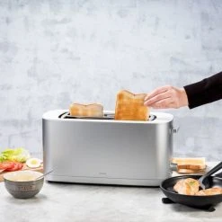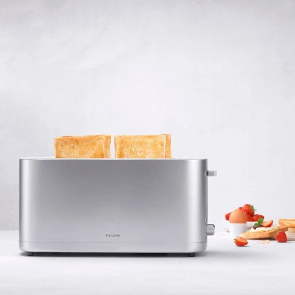 Få perfekt rostatbröd till hela familjen varje dag med Enfinigy brödrosten från Zwilling, som har plats för fyra skivor bröd per gång. Brödrosten är utvecklad i Tyskland, och designad i Milano, Italien av Matteo Thun & Antonio Rodriquez. Tack vare de fyra värmeelementen ger brödrosten jämn värme, vilket ger ett jämt rostat bröd.