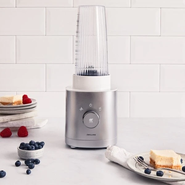 Var kreativ i köket med hjÀlp av Enfinigy blendern frÄn Zwilling som Àr bÄde kraftig och kompakt. Blendern kan mixa allt frÄn smoothies och isbitar till nötter och kryddor utan problem. Detta tack vare knivbladen av rostfritt stÄl som Àr tillverkade i Solingen, Tyskland och har oövertrÀffad skÀrprestanda. Det ingÄr ocksÄ en dricksflaska sÄ du kan göra smoothies och ta med dig.