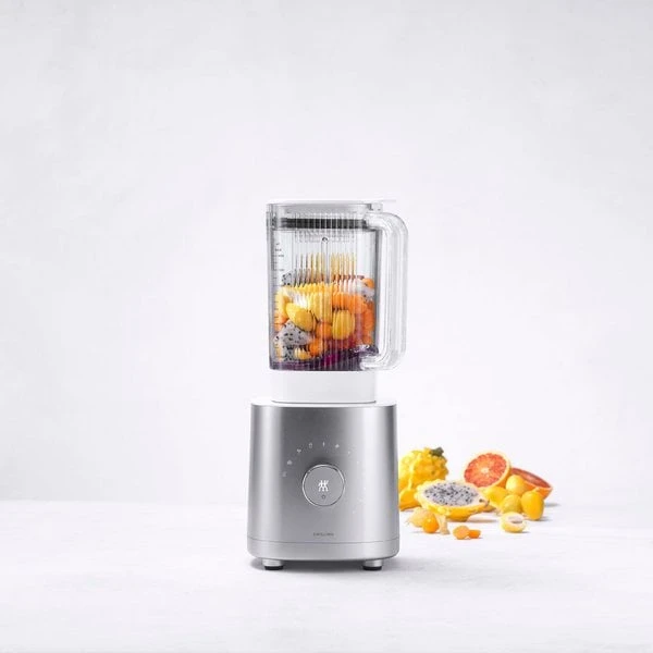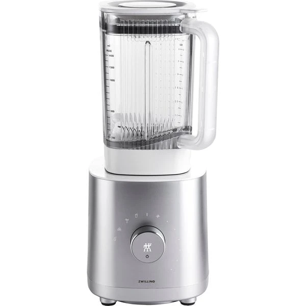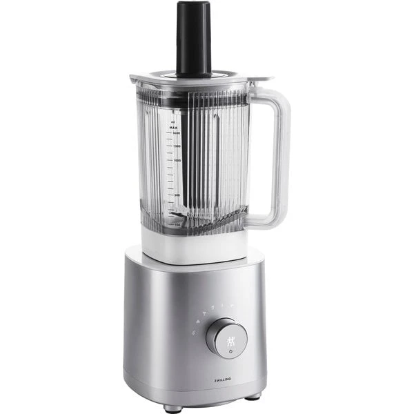 En bra blender Àr ovÀrderlig i de flesta kök. Enfinigy blendern frÄn Zwilling har ett extremt vasst knivblad av rostfritt stÄl, som Àr tillverkade i Solingen, Tyskland. Tack vare knivbladet och den kraftfulla 1200 watts motorn kan blendern klarar allt frÄn frusen frukt till nötter och isbitar.