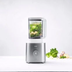 Med Enfinigy blendern frÄn Zwilling Àr du garanterad en kraftfull blender med ett knivblad i sÀrklass. Bladet Àr tillverkad av rostfritt stÄl och Àr mycket vasst, sÄ det kan utan problem krossa is, frusen frukt och nötter. Knivbladet tillverkas i Solingen, Tyskland. Blendern har Àven en kraftfull 1600 watts motor och har 12 hastighetsinstÀllningar samt sex automatiska program: puls, smoothie, cocktail, is, is-kross och rengöring.