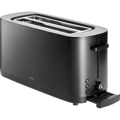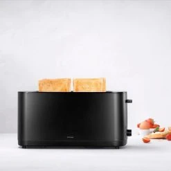 Njut av doften av rostade mackor med Zwillings brödrost som består av högkvalitativt och värmeisolerande rostfritt stål. Här finns två långa fack, en avtagbar smulbricka samt sju olika värmenivåer så att du kan rostningen som passar dig. Med fyra separata värmeelementen i brödrosten på 1000 watt blir varje brödskiva jämnt rostat på båda sidor. Resultatet blir krispigt på utsidan och mjukt på insidan. Brödrosten har även en soft lift-funktion som förhindrar bröden från att flyga ur rosten.