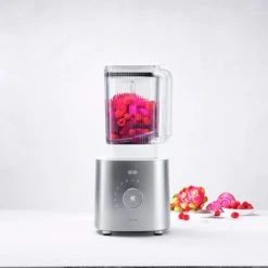 LÄt Power Blender Pro frÄn Zwilling göra allt jobb i köket dÄ den pÄ kort tid kan tillaga allt frÄn smoothies till lÀckra, varma soppor eller bearnaisesÄs. Blendern Àr en del av Enfinigy-serien och Àr mycket tystlÄten. Den har en kraftfull motor pÄ 1200 watt och en vasst knivblad av rostfritt stÄl. Den praktiska kannan Àr BPA-fri och rymmer upp till 1,8 liter. Rengöring för hand rekommenderas.